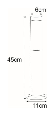 Lampa mierzy 45cm i nadaje się idealnie do umieszczenia jej przy dowolnej ścieżce przechodzącej między zasadzonymi kwiatami lub prowadzącej do wejścia do domu, garażu bądź altanki. Takie proste rozwiązanie sprawia także, że unikniemy przypadkowego podeptania kompozycji kwiatowych, które mogłoby mieć miejsce przy braku wystarczającej ilości światła. Konstrukcja lampy stworzona z metalu, zachowana w chromie sprawia, że całość jest stabilna, trwała i posłuży na lata. Biała przysłona chroni źródło światła przed szkodliwymi warunkami, a produkt posiada ochronę szczelności IP44.