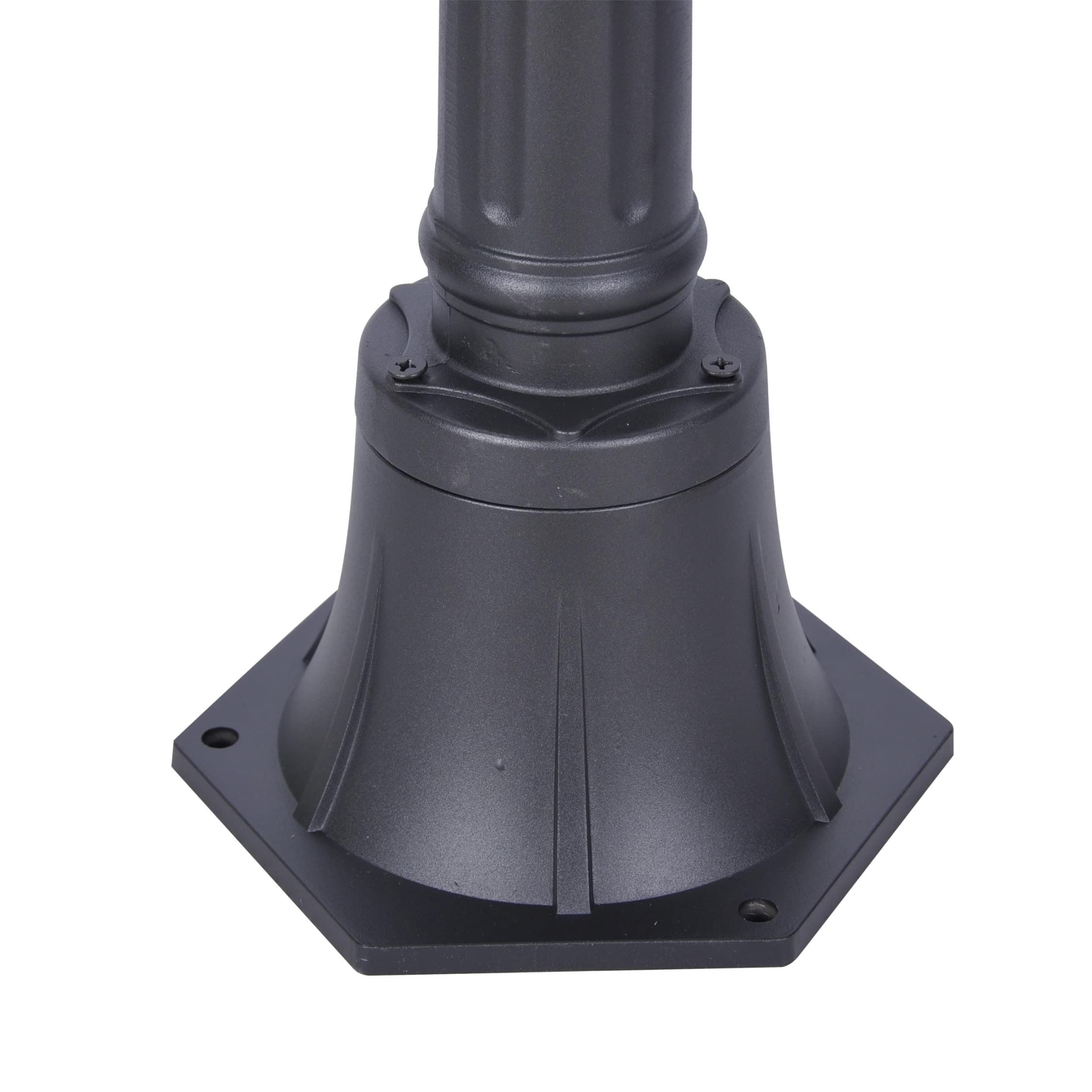 Czarna lampa zewnętrzna 6006A to propozycja oświetlenia do Twojego ogrodu. Doskonale sprawdzi się również jako oświetlenie ścieżki czy podjazdu. Metalowa konstrukcja lampy jest stabilna i trwała, a co za tym idzie – posłuży Ci na lata użytkowania. Szklane szybki, w kształcie trapezów, nie tłumią światła, dzięki temu przestrzeń jest doskonale oświetlona. Wpływa na to również wysokość produktu, czyli 114 cm.