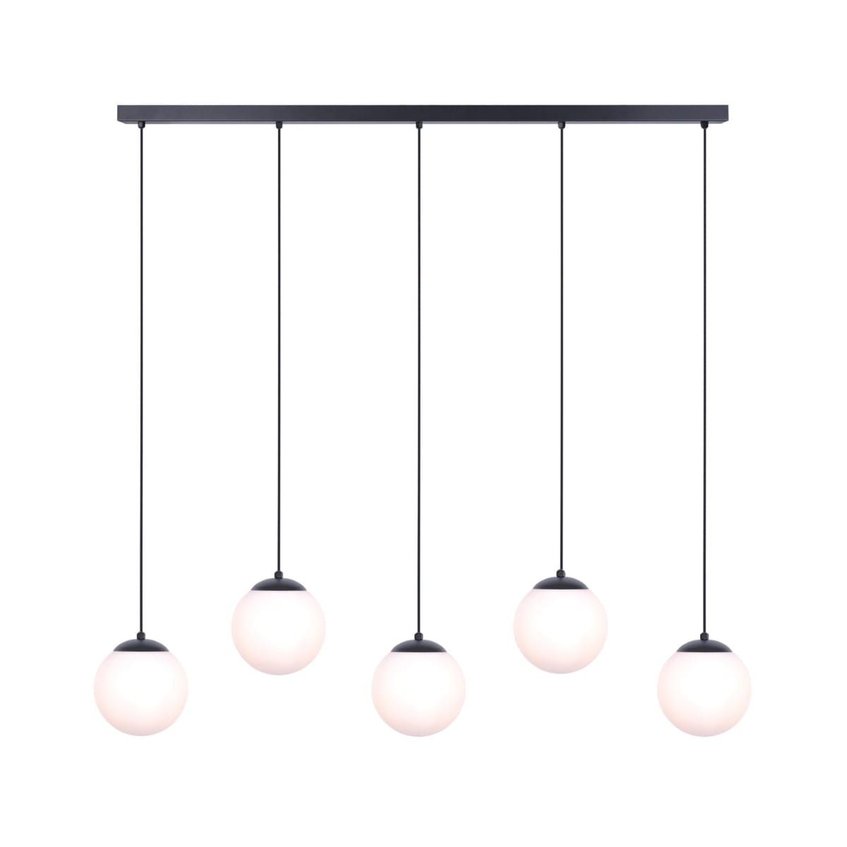 Żyrandol K-4747 z naszej nowej serii CAMINA to idealna propozycja oświetleniowa dla Twojego domu. Aż pięć źródeł światła zostało umieszczonych na przewodach, wychodzących z podłużnej podsufitki o długości 115 cm. Każdy ze zwisów ma możliwość regulacji długości, dzięki czemu możesz stworzyć niepowtarzalną kompozycję pod swoim sufitem. Źródła światła osłonięto kloszami o średnicy 16 cm. Dzięki swoim rozmiarom, lampa nie przytłoczy wnętrza, ale nada mu elegancji i nowoczesnego wydźwięku. Lampa takiej budowy sprawdzi się świetnie nad stołem w jadalni bądź wyspą kuchenną. Kształt kaskady podkreśli podłużne blaty i dokładnie je doświetli.