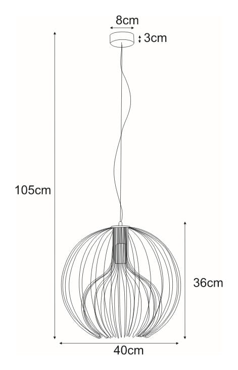 K-3405 CZARNA to mniejsza propozycja klosza. Posiada 40 cm szerokości i 40 cm wysokości. Takimi kształtami idealnie wpasuje się w każdego typu pomieszczenie. Można zastosować go solo bądź stworzyć ciekawą kompozycję z kilku takich elementów. Lampę umieszczono na regulowanej żyłce, której maksymalny zwis to 105 cm.
