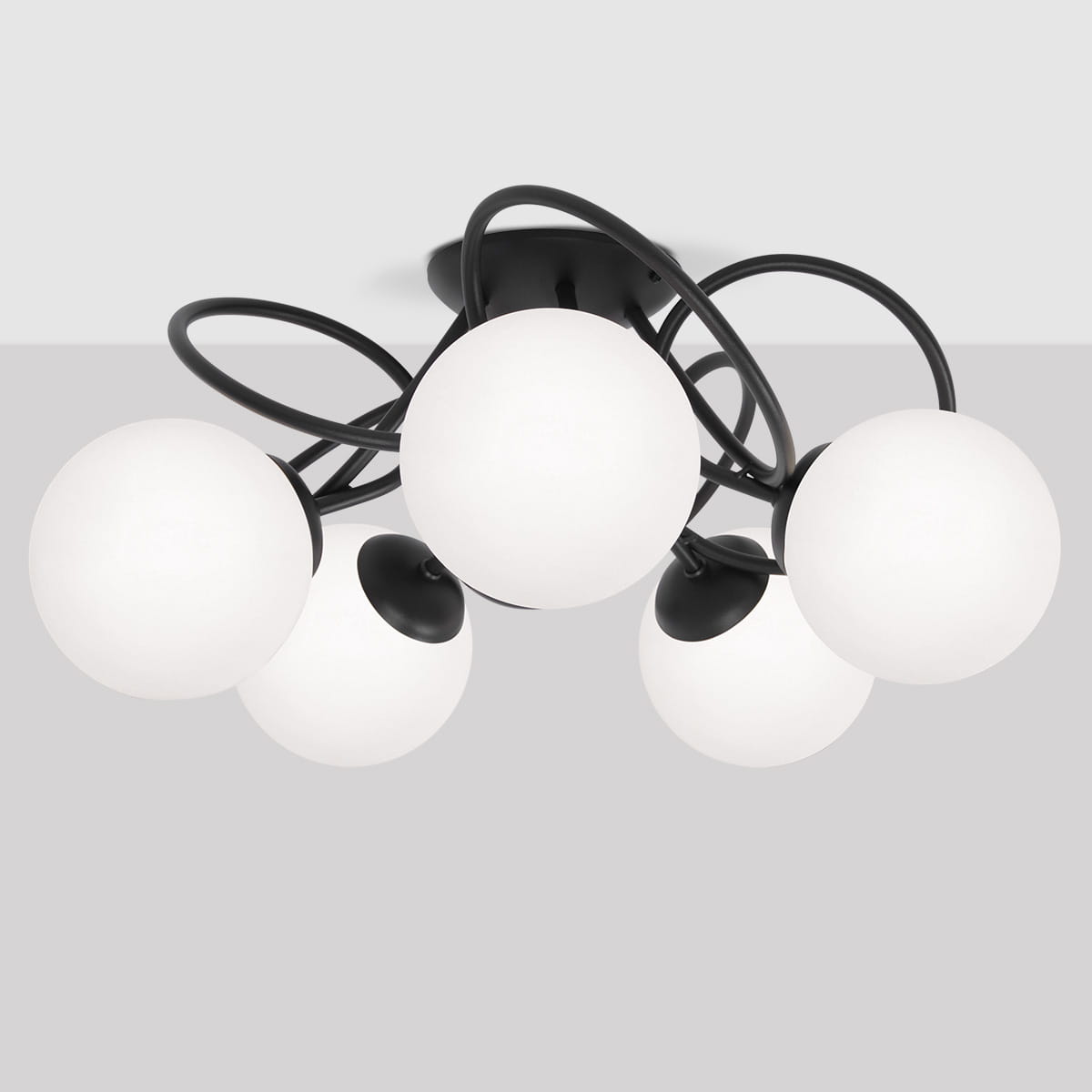 Dodatkowo lampa posiada aż 5 źródeł światła, dzięki czemu bez problemu oświetli nawet większe pomieszczenia. Zastosowanie w lampie dwóch obwodów pozwala na włączenie tylko dwóch lub trzech źródeł światła. Takie rozwiązanie fenomenalnie sprawdzi się gdy chcemy uzyskać efekt delikatniejszego oświetlenia pomieszczenia lub tylko jego części.